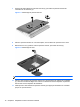 6. Desserrez les deux vis imperdables au bas de l'ordinateur (1) pour libérer la partie inférieure du