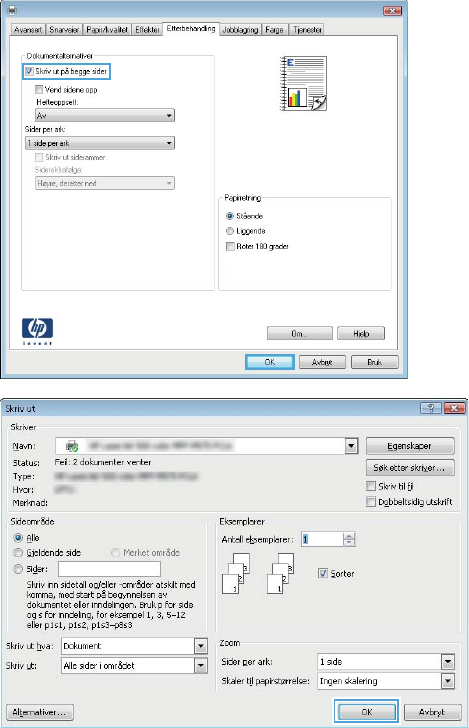 4. Merk av for Skriv ut på begge sider. Klikk på OK for