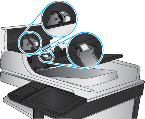 - Limpieza de los rodillos de recogida y la placa de separación del alimentador de documentos