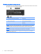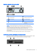 Priekinio skydelio komponentai Atsižvelgiant į modelį, diskų įrenginių konfigūracija gali skirtis. Kai kuriuose modeliuose viena ar kelios diskų įrenginių nišos gali būti uždengtos dangteliais. 1 Plonasis optinis diskų įrenginys (pasirinktinis) 6 Ausinių jungtis 2 Įkraunantysis USB 2.0 prievadas (juodas) 7 Dviejų būsenų įjungimo mygtukas 3 USB 2.0 prievadas (juodas) 8 Standžiojo disko veikimo indikatorius 4 USB 3.