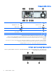 רכיבי הלוח הקדמי תצורת הכוננים משתנה בהתאם לדגם .בדגמים מסוימים קיים לוח עיוור המכסה תא כונן אחד או יותר. 1 כונן תקליטורים אופטי דק )אופציה( 6 מחבר לאוזניות 2 יציאת - USB 2.0טוענת )שחור( 7 לחצן הפעלה דו-מצבי 3 יציאות ) USB 2.0שחור( 8 נורית פעילות של הכונן הקשיח 4 יציאות ) USB 3.0כחול( 9 קורא כרטיסי מדיה 3.