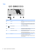 (6)   Tecla num lk Ativa e desativa o teclado numérico incorporado quando