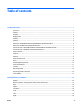 Table of contents 1 Product description ....................................................................................................................................... 1 Processor ............................................................................................................................................................... 1 Chipset .........................................................................................................................................................