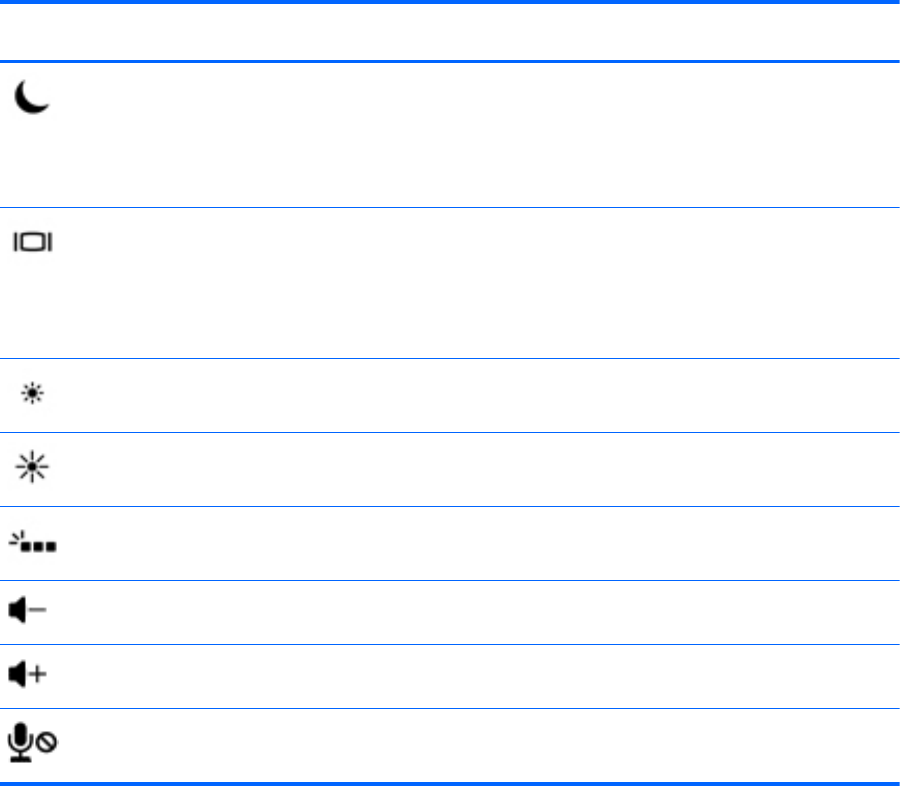 Tekan tombol fn, lalu tekan tombol fungsi yang tepat seperti ditunjukkan oleh ikon di bawah ini.