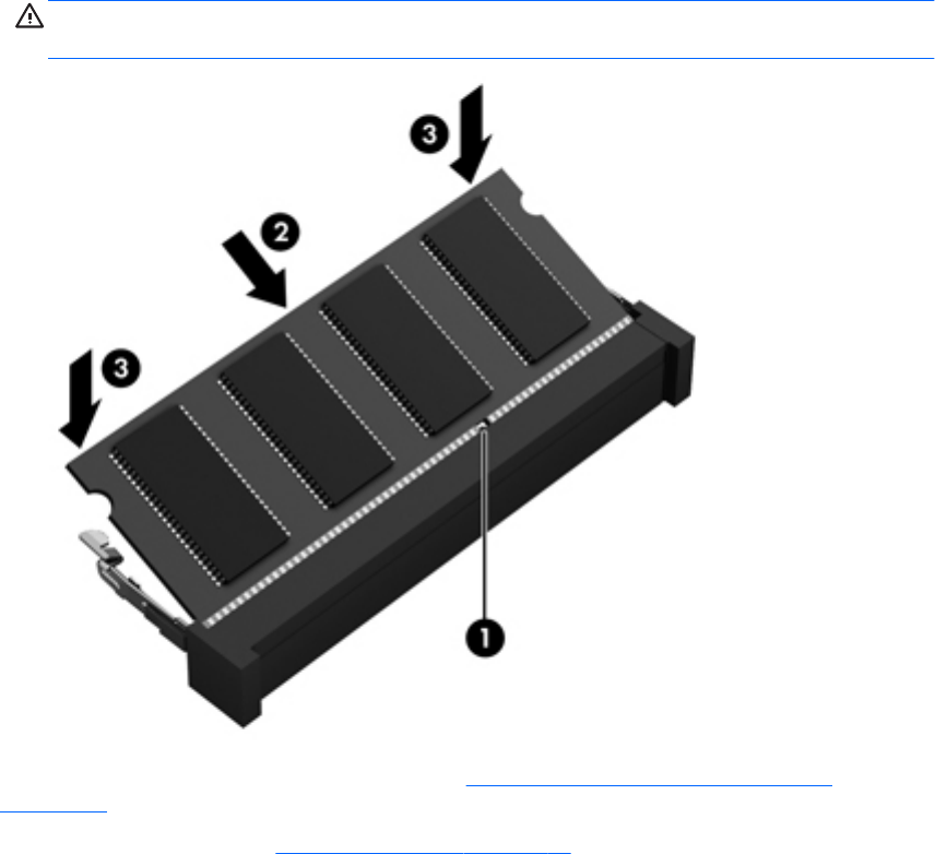 c. Drücken Sie das Speichermodul (3) vorsichtig nach unten, indem Sie auf beide Kanten des
