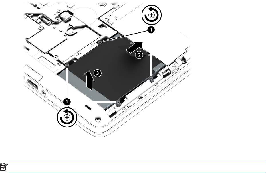 7. Løft harddisken (3) ut av harddiskbrønnen.