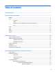 Table of contents 1 Product description ....................................................................................................................................... 1 2 External component identification .................................................................................................................. 7 Display .................................................................................................................................................................... 7 Top ..