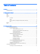 Table of contents 1 Welcome ........................................................................................................................................................... 1 Finding information ............................................................................................................................... 2 2 Getting to know your computer ......................................................................................................................... 4 Right ..............