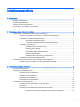Inhaltsverzeichnis 1 Richtig starten ................................................................................................................................................... 1 Wichtige erste Schritte ......................................................................................................................... 1 Unterhaltungsfunktionen ...................................................................................................................... 1 Weitere HP Informationsquellen .
