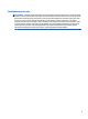 Čišćenje dodirne table i tastature OPREZ: Ne dozvolite da tečnost dospe između tastera na tastaturi, čak i kada čistite računar. Ovo može trajno oštetiti unutrašnje komponente. ● Da biste očistili dodirnu tablu i tastaturu, koristite mekanu krpu od mikrofibera ili krpu koja ne stvara elektricitet i nije masna (kao što je jelenska koža) nakvašenu sredstvom za čišćenje stakla bez alkohola ili koristite odgovarajuću tkaninu za jednokratnu upotrebu.