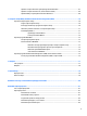 Stvarno kazalo A akumulator ohranjanje zmogljivosti 37 praznjenje 36 prikaz preostale napolnjenosti 36 stopnje izpraznjenosti akumulatorja 36 Antena komunikacije bližnjega polja , prepoznavanje 12 antena NFC, prepoznavanje 12 anteni WLAN, prepoznavanje 11 anteni WWAN, prepoznavanje 11 B berljivi mediji 33 BIOS posodabljanje 71 prenos posodobitve 72 ugotavljanje različice 71 bližnjične tipke izklop mikrofona 25 nastavitev glasnosti 24 opis 24 osvetlitev tipkovnice 25 povečanje glasnosti zvočnika 24 povečanje