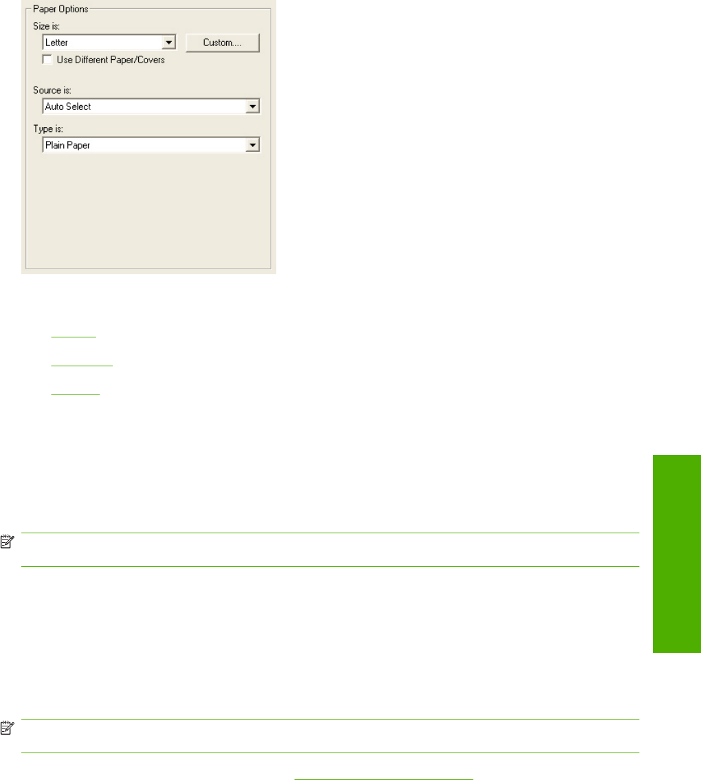 paper for the entire print job. That is, if the print job uses letter-size paper, any option that you select