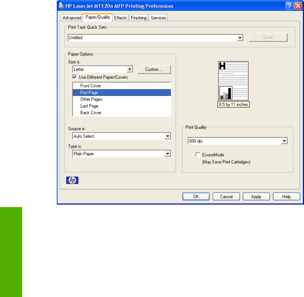 Use these options to select an alternative paper size, type, or source for the first page, other pages, or