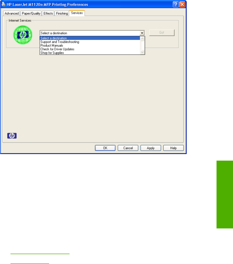 If you have Internet access, select any of these items and then click Go! to open the corresponding HP
