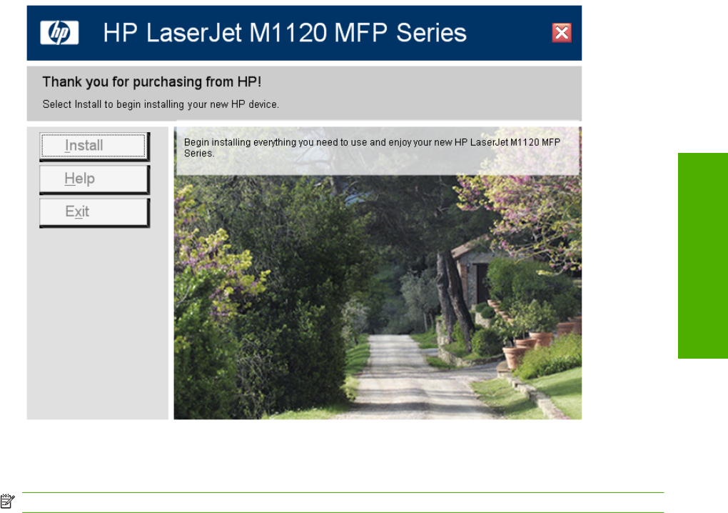 Install. The installation wizard guides the HP LaserJet M1120 MFP Series software installation.