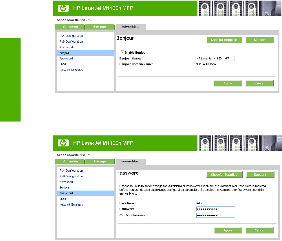 Use the Bonjour page to enable or disable the Bonjour settings for the device.