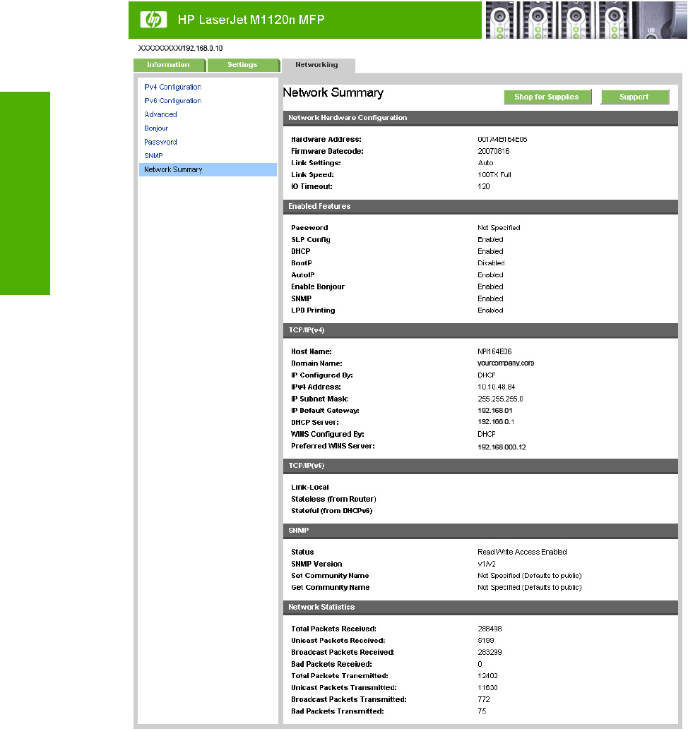 Figure 2-12 HP EWS – Network Summary page