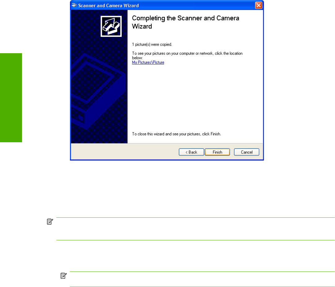 7. The Completing the Scanner and Camera Wizard dialog box appears.