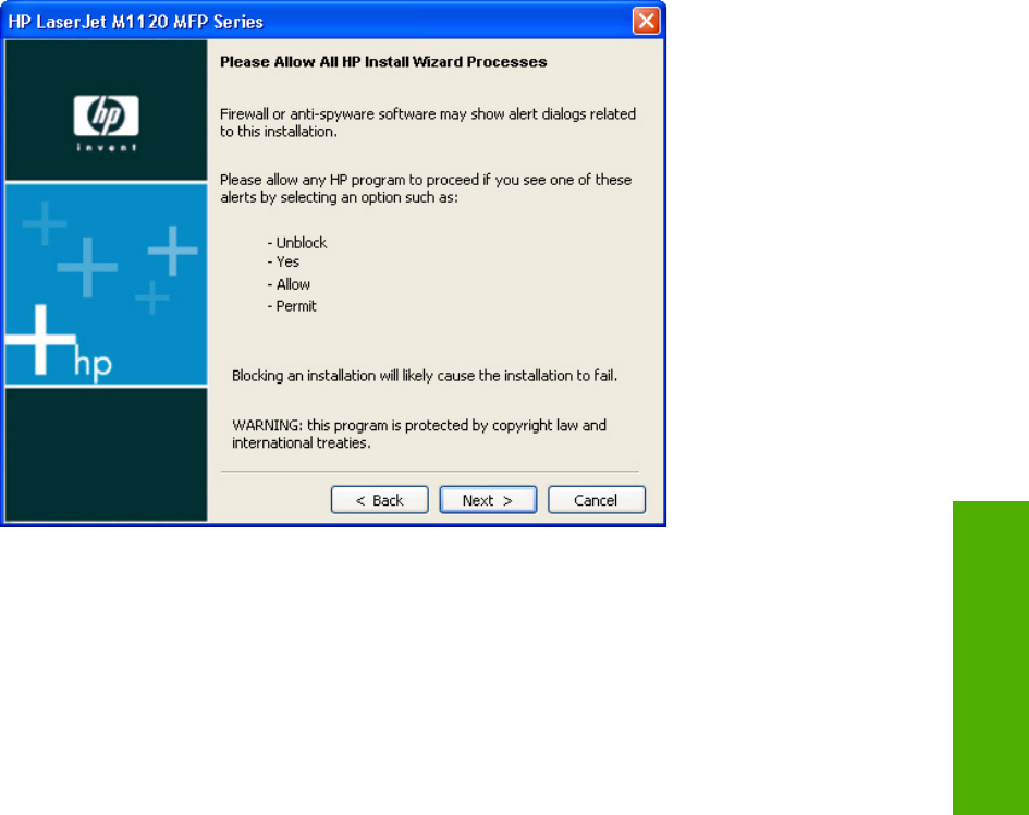 3. The Please Allow All HP Install Wizard Processes dialog box appears.