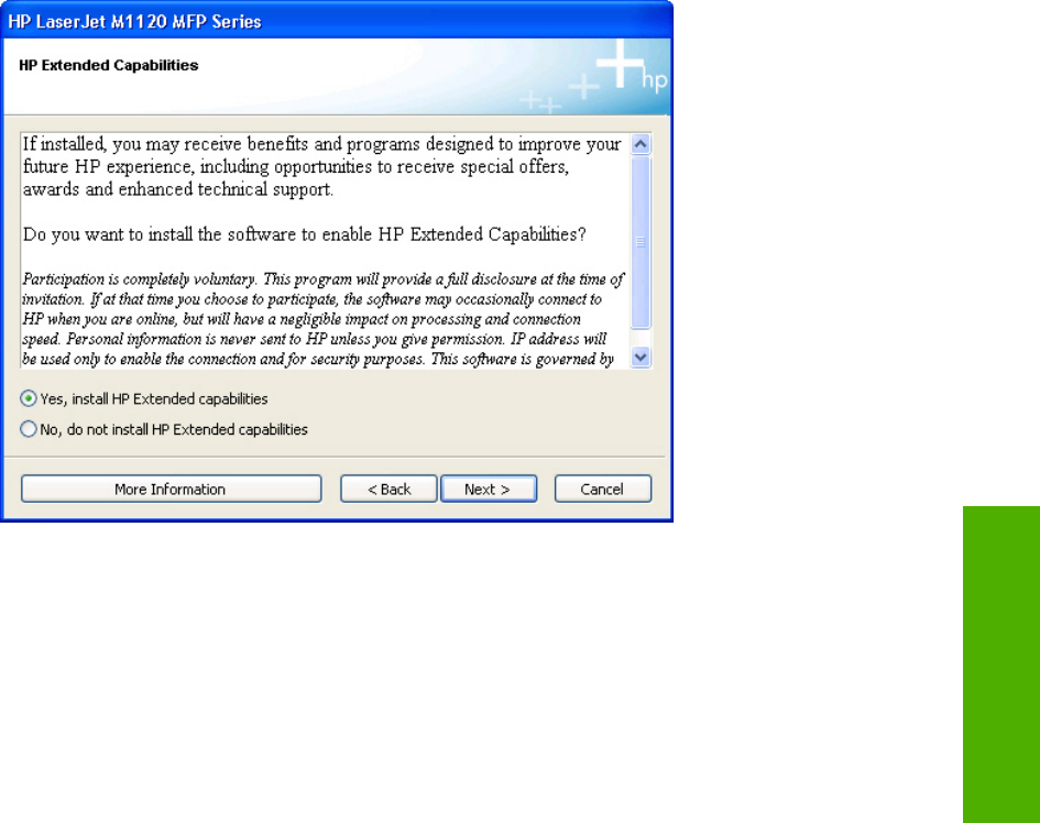 If you select the Do not install HP Extended Capabilities option, you will not be invited to