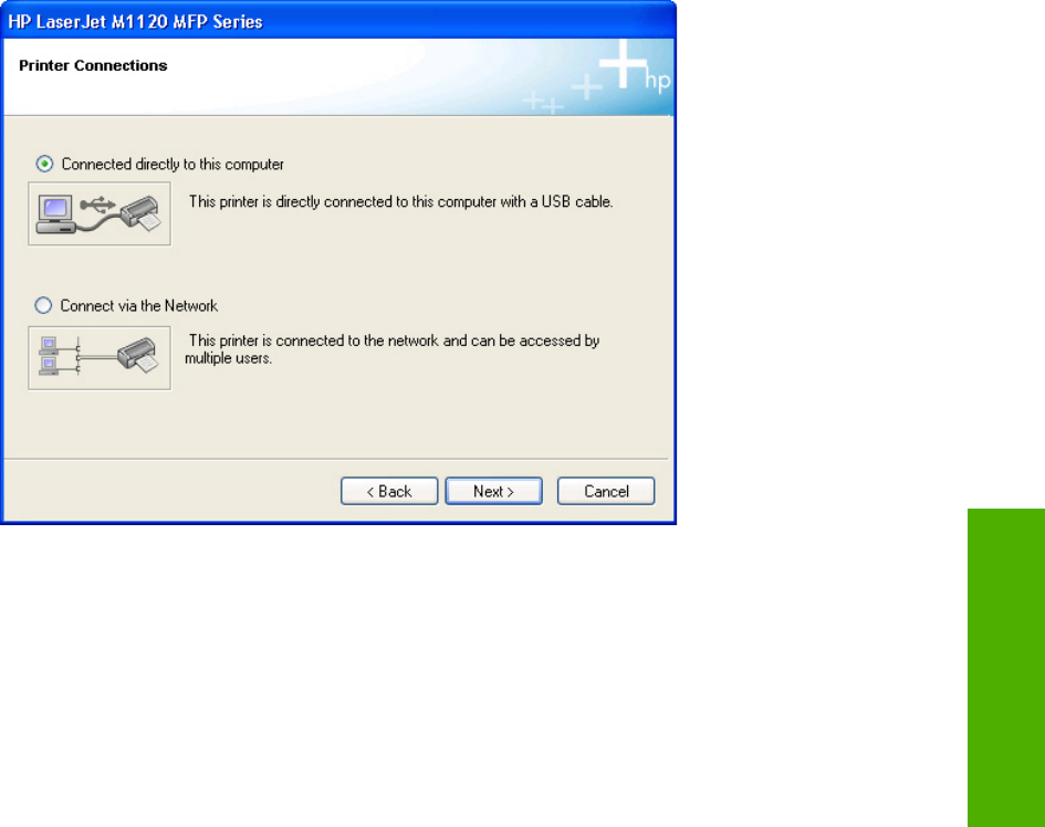 Click Connect via the network to install software for a network connection. Then click Next to go