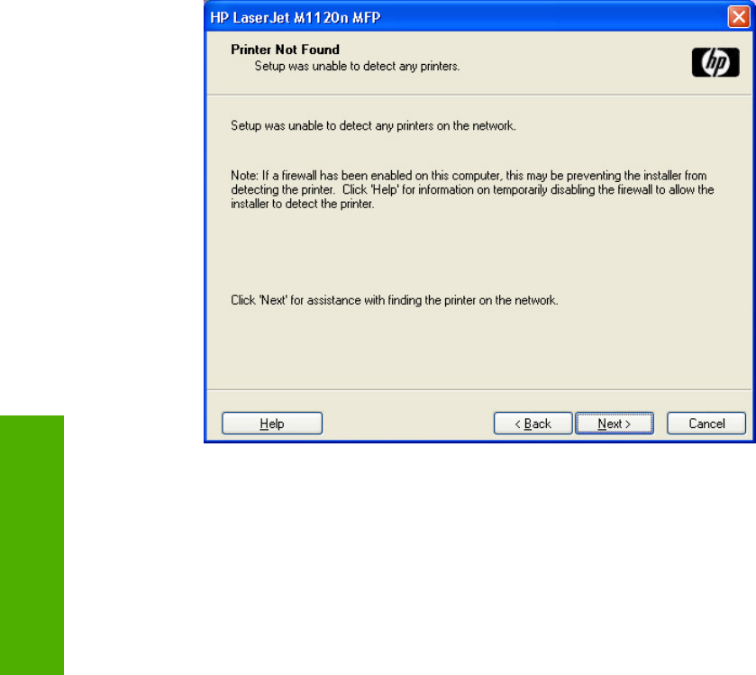 13. If the printer is not found on the network, the Printer Not Found dialog box appears.