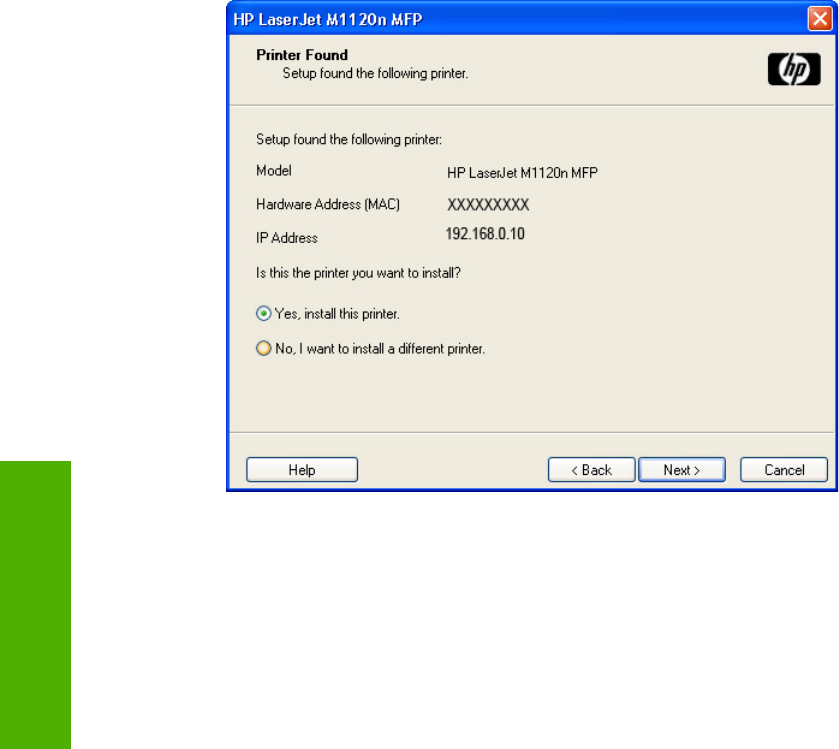 Click Yes, install this printer. and then click Next to continue to the Confirm Network