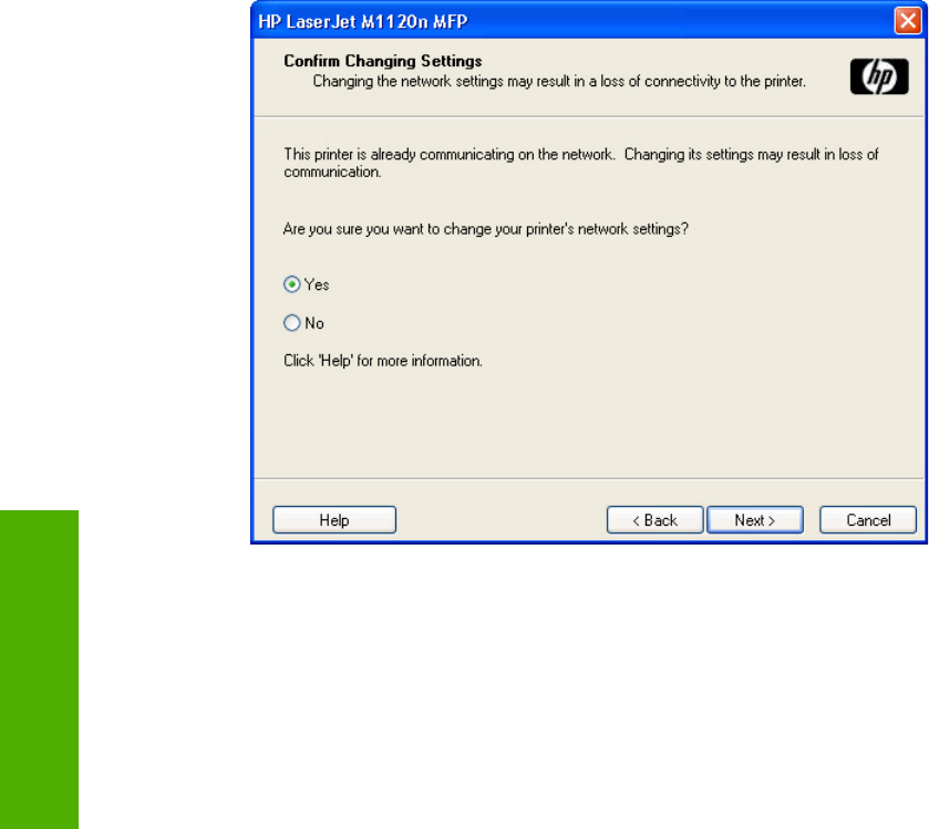Click Yes and then click Next to go to the Change TCP/IP Settings dialog box (step 19).