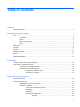 Table of contents 1 Welcome Finding information ............................................................................................................................... 2 2 Getting to know your computer Top ...................................................................................................................................................... 5 TouchPad ............................................................................................................................ 5 Lights .