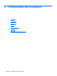2 4 Komponenten des Computers ● Oberseite ● Rechte Seite ● Linke Seite ● Display ● Wireless-Antennen ● Unterseite ● Zusätzliche Hardwarekomponenten Kapitel 2 Komponenten des Computers