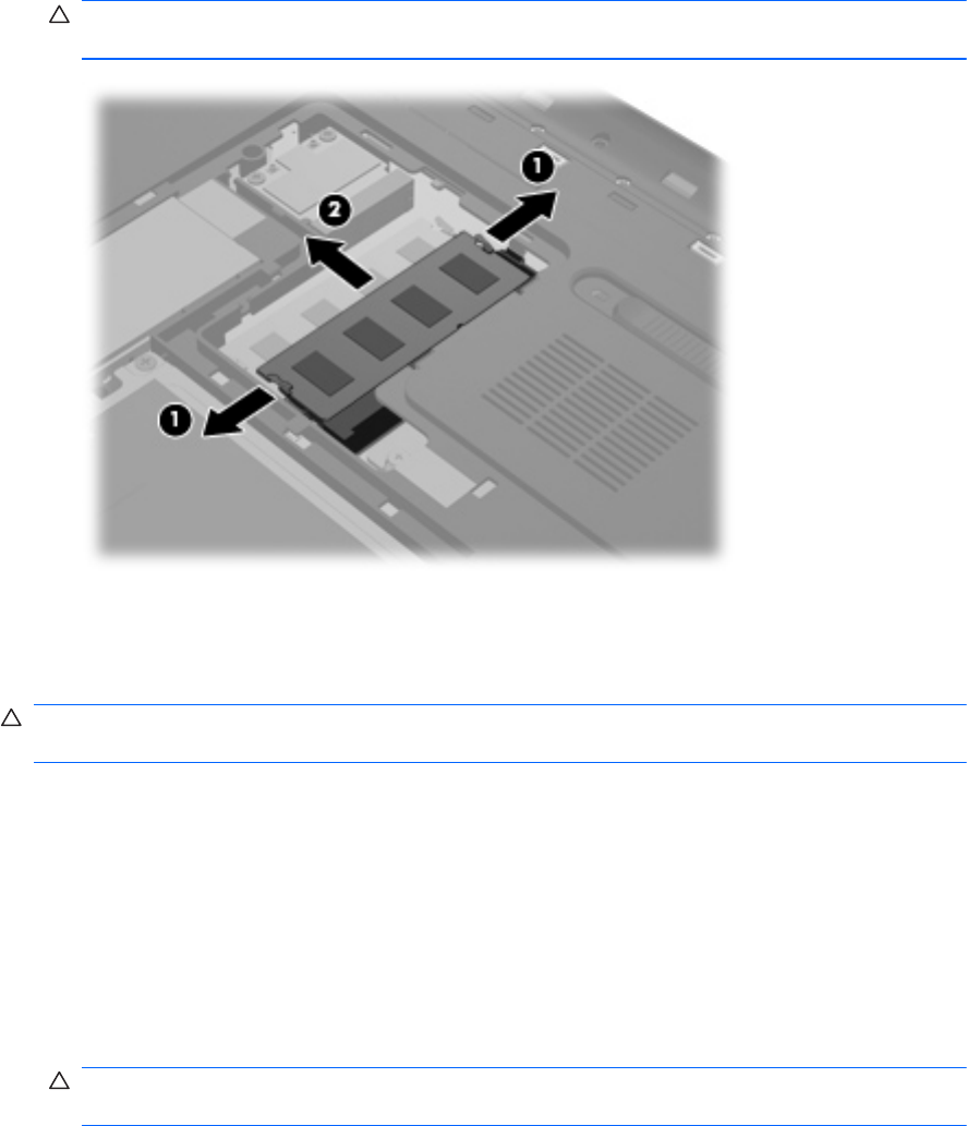 b. Apucaţi marginile modulului de memorie (2), apoi trageţi uşor în afară modulul de memorie