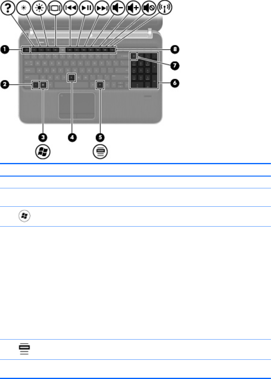 (6) Tümleşik sayısal tuş takımı Tuş takımı etkinleştirildiğinde, tuşlar harici sayısal tuş