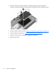 6. Хванете палеца на конектора на кабела на твърдия диск (1) и го повдигнете, за да