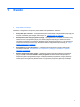Ištekliai Jei norite išsamesnės informacijos Saugaus ir patogaus darbo vadovas ● Tinkama darbo vieta, laikysena, sveikata ir darbas Norėdami pasiekti šį vadovą: ● Elektros ir mechaninės saugos informacija Pasirinkite Pradėti > Žinynas ir palaikymas > Vartotojo vadovai. – arba – Pasirinkite Pradėti > Visos programos > HP > HP dokumentai. – arba – Apsilankykite http://www.hp.com/ergo.