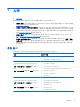 버튼 및 지문 인식기(일부 모델만 해당) 구성 요소 (1) 설명 전원 버튼 ● 컴퓨터가 꺼져 있을 때 이 버튼을 누르면 컴퓨터가 켜집 니다. ● 컴퓨터가 켜져 있을 때 이 버튼을 살짝 누르면 절전 모 드가 시작됩니다. ● 컴퓨터가 절전 모드 상태일 때 버튼을 짧게 누르면 절전 모드가 종료됩니다. ● 컴퓨터가 최대 절전 모드 상태일 때 버튼을 짧게 누르면 최대 절전 모드가 종료됩니다. 컴퓨터가 응답을 멈춰 Windows® 종료 절차를 사용할 수 없 는 경우, 전원 버튼을 5 초 이상 누르면 컴퓨터가 꺼집니다. 전원 설정에 대해 자세히 알아 보려면: (2) 무선 버튼 ● Windows 7—시작 > 제어판 > 시스템 및 보안 > 전원 옵션을 선택합니다. ● Windows Vista®—시작 > 제어판 > 시스템 및 유지 관 리 > 전원 옵션을 선택합니다. ● 자세한 내용은 HP 노트북 참조 안내서를 참조하십시오.