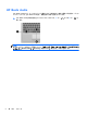 ランプ 名称 (1) (2) (3) 説明 電源ランプ 無線ランプ QuickWeb ランプ ● 点灯:コンピューターの電源がオンになっています ● 点滅:コンピューターがスリープ状態になっています ● 消灯:コンピューターの電源がオフになっているか、ハ イバネーション状態になっています ● 白色:無線 LAN デバイスや Bluetooth®デバイスなどの 内蔵無線デバイスの電源がオンになっています ● オレンジ色:すべての無線デバイスがオフになっていま す ● 点灯:コンピューターの電源がオンになっています ● 消灯:コンピューターの電源がオフになっているか、ハ イバネーション状態になっています 注記: 詳しくは、このガイドの22 ページの「HP QuickWeb」の項目および[HP QuickWeb]ソフトウェアのヘ ルプを参照してください (4) ミュート(消音)ランプ ● オレンジ色:コンピューターのサウンドがオフになって います ● 消灯:コンピューターのサウンドがオンになっています 表面の各部 7