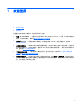 1 欢迎使用 ● Beats Audio ● 查找信息 在设置并注册笔记本计算机后,请务必执行以下步骤: ● 设置 HP QuickWeb — 无需启动主操作系统,即可立即访问 Internet、小工具、电子邮件和通信 程序。有关详细信息,请参阅第 20 页的 HP QuickWeb。 ● 连接到 Internet — 设置有线或无线网络,以便可连接到 Internet。有关详细信息,请参阅 第 16 页的联网。 ● 更新防病毒软件 — 保护笔记本计算机免受病毒侵害。笔记本计算机上预装了此类软件,它包含限 时的免费更新预订。有关详细信息,请参阅《HP 笔记本计算机参考指南》。有关访问该指南的说 明,请参阅第 3 页的查找信息。 ● 了解笔记本计算机 — 了解笔记本计算机的功能。有关其它信息,请参阅第 5 页的了解笔记本 计算机和第 22 页的键盘和指点设备。 ● 查找安装的软件 — 访问笔记本计算机上预装的软件列表。选择开始 > 所有程序。有关如何使用 笔记本计算机附带的软件的详细信息,请参阅软件生产商的说明文档。该文档可能以软件的形式提 供,也可能在生产商网站上提供。 1