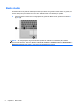 Desativação e ativação do TouchPad Para ativar e desativar o TouchPad, toque duas vezes rapidamente no botão de ativação/ desativação do TouchPad. A tabela a seguir exibe e descreve os ícones de exibição do TouchPad. Luz do TouchPad Item Descrição Âmbar Indica que o TouchPad está desativado. Desligado Indica que o TouchPad está ativado.