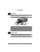 Basic Setup 3 Connect the computer to external power To reduce the risk of electric shock or damage to your equipment, observe Å WARNING: these practices: ■ Plug the power cord into an AC outlet that is easily accessible at all times. ■ Disconnect power from the computer by unplugging the power cord from the AC outlet (not by unplugging the power cord from the computer). ■ If provided with a 3-pin attachment plug on your power cord, plug the cord into a grounded (earthed) 3-pin outlet.