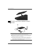 Базове налаштування 3 Підключіть комп’ютер до зовнішнього джерела живлення Щоб зменшити ризик ураження електричним струмом або Å УВАГА! пошкодження обладнання, дотримуйтеся наведених нижче інструкцій. ■ Під’єднуйте кабель живлення до розетки змінного струму, яка завжди доступна. ■ Припиняйте подачу живлення до комп’ютера, від’єднуючи кабель живлення від розетки змінного струму (а не від комп’ютера).