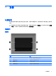 按键 组件 说明 (1) esc 键 与 fn 键组合使用时显示系统信息。 (2) 功能键 与 fn 键组合使用时,可执行常用的系统功能。 (3) fn 键 与功能键或 esc 键组合使用时,执行常用的系统功能。 (4) 操作系统徽标键 显示操作系统菜单。 (5) 操作系统应用程序键 显示指针所指项目的快捷菜单。 (6) 嵌入式数字小键盘按键 启用嵌入式数字小键盘时,按键的功能类似于外接数字小键盘按 键。将 fn 键与 num lk 键组合使用,可以启用/禁用嵌入式数字小键 盘。 (7) num lk 键 与 fn 键组合使用时,可以启用/禁用嵌入式数字小键盘。 前部组件 4 第 1 章 功能