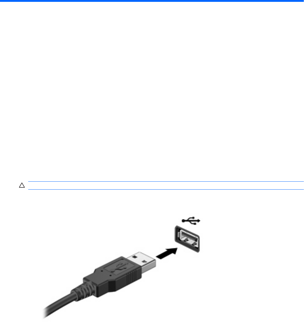 注意: 为防止损坏 USB 连接器,请轻轻插入 USB 设备。
