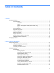 Table of contents 1 Features Identifying hardware ............................................................................................................................. 1 Top components .................................................................................................................. 1 TouchPad ............................................................................................................ 1 Lights ..........................................................................