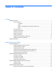 Table of contents 1 Features Identifying hardware ............................................................................................................................. 1 Top components .................................................................................................................. 1 TouchPad ............................................................................................................ 1 Lights ..........................................................................