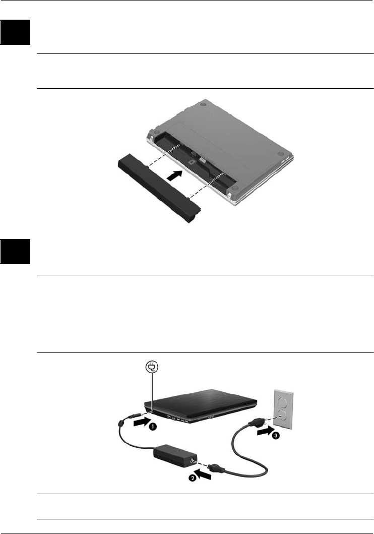 Ett delvis laddat, nytt batteri kan driva datorn när programvaruinstallationen är klar,