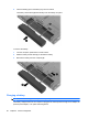 4. Slowly lower the display (1) until the webcam light (2) blinks and you hear a sound, which indicates