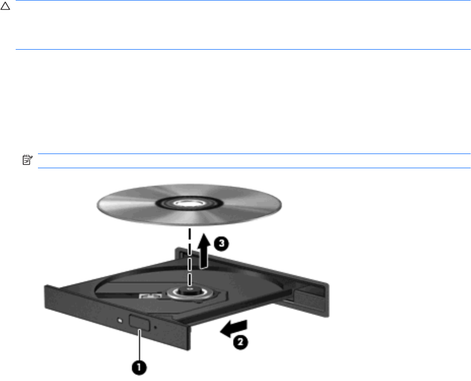 POZNÁMKA: Ak zásobník nie je úplne prístupný, disk pri vyberaní opatrne nakloňte.