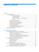 Tabla de contenido 1 Recursos Identificación del hardware ................................................................................................................... 1 Componentes de la parte superior ...................................................................................... 2 Dispositivos señaladores .................................................................................... 2 Indicadores luminosos ...............................................................................