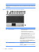 (6) Bouton du pavé tactile Permet d'activer ou de désactiver le pavé tactile.