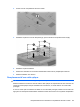 3. Remettez en place les 4 vis du disque dur (1), puis les bouchons de protection des vis (2).